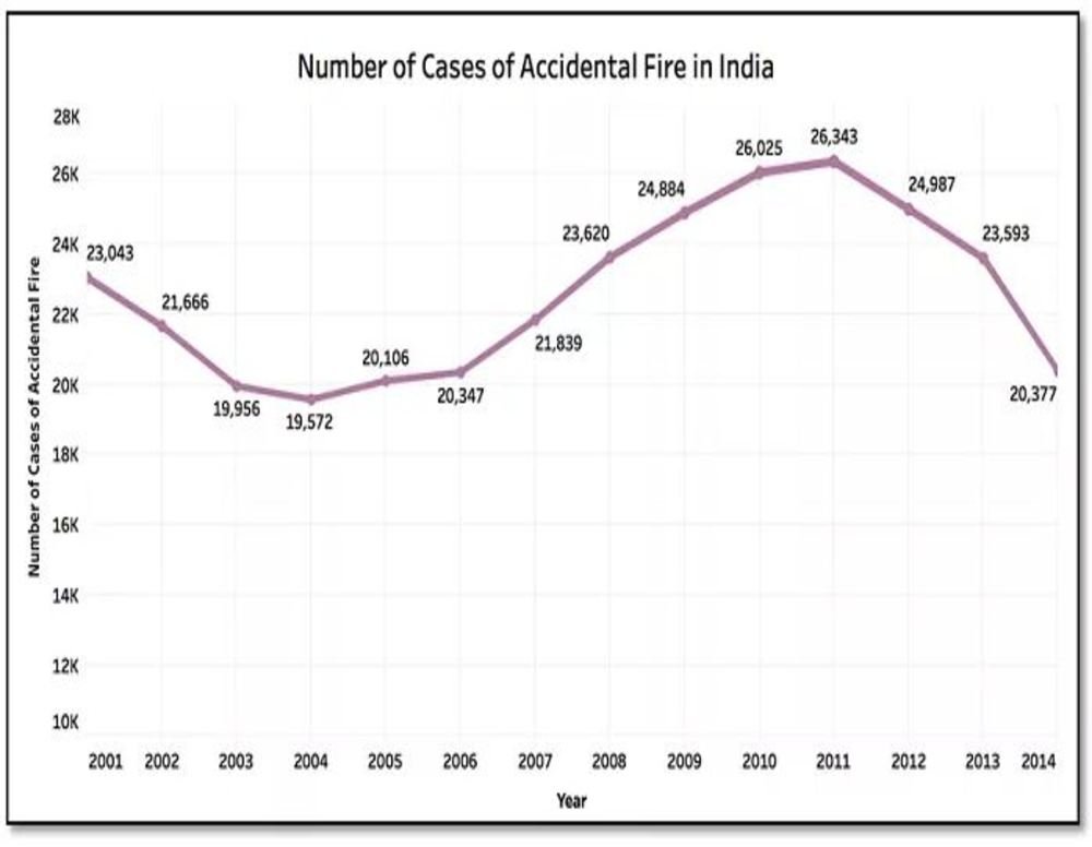 From year 2001 to 2014, 3.16 lakh fire accident cases happened in the country. Source( https://factly.in/india-witnessed-an-average-59-deaths-per-day-due-to-fire-accidents-between-2001-and-2014/)