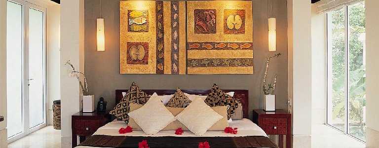Paintings, whether large or small, can really add a nice traditional stroke to your home. Look for paintings that have an undeniably ethnic look, using vibrant, traditional colours, motifs, symbols, or landscapes. You could choose to have just one large painting that looks over your entire living space or have several small paintings strewn all over your home.